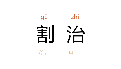 引谢觉哉 《不惑集·学习常谈》:“比如人身上生了疮疖,要割治,受不住割治的痛,疮疖不会消失且将发展。”王西彦 《人的世界·第三家邻居》:“严一峰 先生发现自己患着慢性盲肠炎。他决定进医院去割治。”