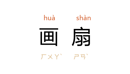 引南朝 梁 鲍泉 《落日看还》诗:“雕甍斜落影,画扇拂游尘。”唐 杜甫 《伤秋》诗:“高秋收画扇,久客掩荆扉。”清 王士禛 《池北偶谈·谈艺二·吴画余绣》:“康熙 丁未,从同年 徐敬菴 旭龄 处,见 秀水 吴氏 画扇二:一学 李小将军 山水,一《洛神图》,妙入毫髮。”