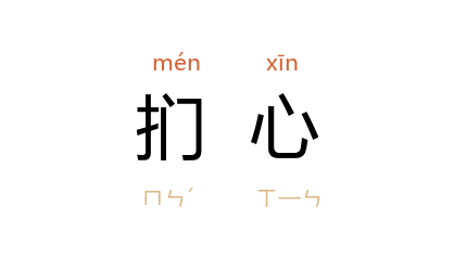 引北齐 颜之推 《神仙》诗:“镜中不相识,捫心徒自怜。”唐 卢纶 《雪谤后书事上皇甫大夫》诗:“览镜愁将老,捫心喜復惊。”清 纪昀 《阅微草堂笔记·滦阳消夏录四》:“此事不以口舌争,君捫心清夜,先自问其何如。”滇剧《闯宫》:“你所做下的罪孽,扪心想想,也应拔剑自杀!”