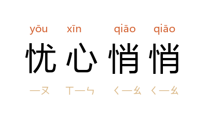 引《诗经·邶风·柏舟》:「忧心悄悄,愠于群小。」元·宫大用《范张鸡黍·第四折》:「岂不闻晏平仲为齐相,乘车人忧心悄悄,倒是御车吏壮志扬扬。」