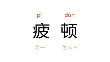 引《三国志·魏志·任城威王彰传》:“长史诸将皆以为新涉远,士马疲顿。”邹韬奋 《经历》十一:“每天夜里,我们两人都开着夜车,预备考试的功课到两三点钟,疲顿得不堪言状。”
