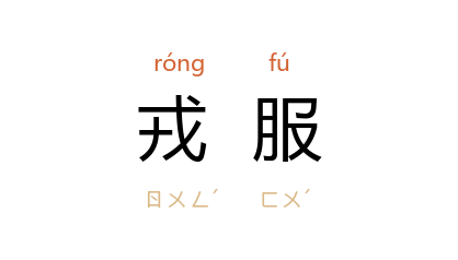 引《左传·襄公二十五年》:「郑子产献捷于晋,戎服将事。」《五代史平话·周史·卷下》:「仁赡见孙晟,戎服拜于城上。」