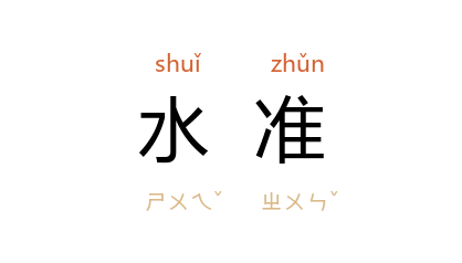 例如:「文化水准」、「教育水准」、「知识水准」。