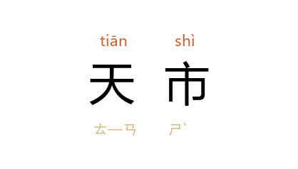 引《史记·天官书》:“东北曲十二星曰旗。旗中四星曰天市。”张守节 正义:“天市 二十三星,在房、心东北,主国市聚交易之所,一曰天旗。明则市吏急,商人无利;忽然不明,反是。市中星众则岁实,稀则岁虚。荧惑犯,戮不忠之臣。彗星出,当徙市易都。客星入,兵大起;出之,有贵丧也。”