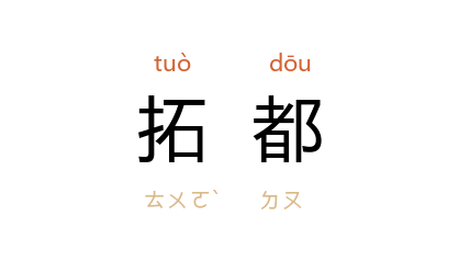 引梁启超 《论私德》一:“羣者谓之拓都,一者谓之幺匿。拓都之性情形制,幺匿为之;幺匿之所本无者,不能从拓都而成。”自注:“拓都者,东译所称团体也。”郭沫若 《初出夔门》二:“他对我们说:‘这是totalandunit的对译,是 严几道 的译语。’……他曾经读过 严几道 译的 斯宾塞 的《群学肄言》。他说:‘拓都大约是指社会,幺匿是指个人。’”