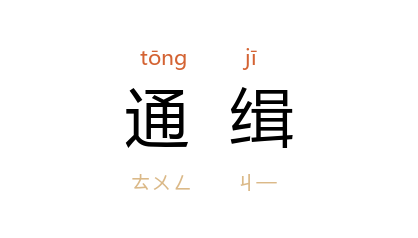 ⒈ 法院通令各地方捉拿在逃的人犯。据《刑事诉讼法》规定:被告或受刑人逃亡或藏匿而不知其所在时,得通缉之。但如知悉逃亡或藏匿的处所,则应拘提,不得通缉。通缉,应以通缉书通知附近或各处检察官、司法警察机关;必要时得登载报纸或以其他方法公告。被通缉的人,称为「通缉犯」。