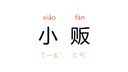 ⒈ 小批量贩卖商品,沿街叫卖或挨户出售日用杂货的人。