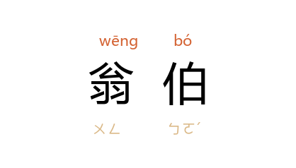 ⒉ 用于形容短小之人。按,《汉书·货殖传》另有 翁伯,因贩脂而成巨富。 《史记·货殖列传》作 雍伯。