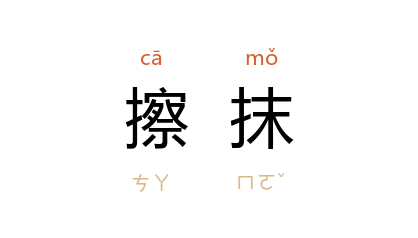 引《红楼梦》第四十回:“李紈 清晨起来,看着老婆子丫头们扫那些落叶,并擦抹桌椅。”《儿女英雄传》第二一回:“褚一官 一面答应,便同 华忠 等把桌子擦抹乾净出去。”曹禺 《北京人》第三幕:“﹝ 陈奶妈 ﹞提起袖口擦抹眼角,走到方凳子前坐下。”