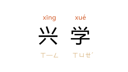 引《礼记·王制》:“乐事劝功,尊君亲上,然后兴学。”鲁迅 《彷徨·孤独者》:“这也不足为奇, 中国 的兴学虽说已经二十年了, 寒石山 却连小学也没有。”