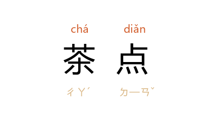 ⒉ 饮茶或喝咖啡时所配的小点心。