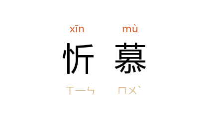 引《史记·管晏列传》:“假令 晏子 而在,余虽为之执鞭,所忻慕焉。”宋 曾巩 《相制二》:“朕观前代君臣之际,圣贤相与之盛,慨然忻慕,愿比迹焉。”清 蒲松龄 《聊斋志异·劳山道士》:“王 窃忻慕,归念遂息。”梁启超 《南学会叙》:“则 启超 日日执鞭以从诸君子之后,所忻慕焉。”