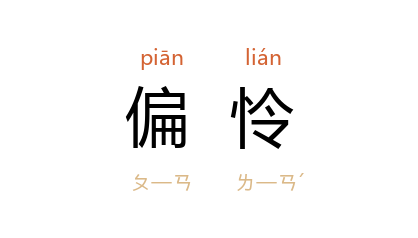 引唐 元稹 《遣悲怀》诗之一:“谢公 最小偏怜女,嫁与 黔娄 百事乖。”《辽史·皇子表》:“谚曰:‘偏怜之子不保业,难得之妇不主家。’”冰心 《南归》:“我的最小偏怜的海上飘泊的弟弟!”