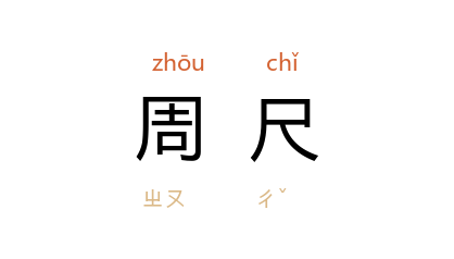 引《礼记·王制》:“古者,以 周 尺八尺为步;今以 周 尺六尺四寸为步。”鲁迅 《故事新编·采薇》:“﹝ 伯夷 叔齐 ﹞跄跄踉踉的颠了 周 尺一丈路远近。”