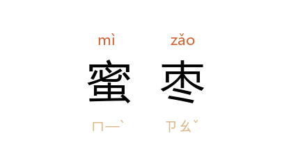⒈ 用糖浸渍过的枣子。先将枣子表皮纵划,分次加入少量砂糖,用文火熬煮四至六小时,并加以翻搅。至糖浓度够时,停火静置二十四小时,而后捞起置于筛网中,以滤滴多余的糖液。进行干燥程序时,初期温度控制在六十五度左右,六小时后,降为六十度,二十四小时后降为五十度,至表面不沾手的程度为止。