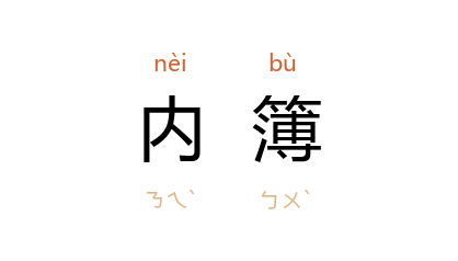 ⒈ 即内号簿。旧时衙门登记上司公文、各房稿案及一应差票的簿子凡一式两本,放在内衙的称“内簿”。参见“内号”。