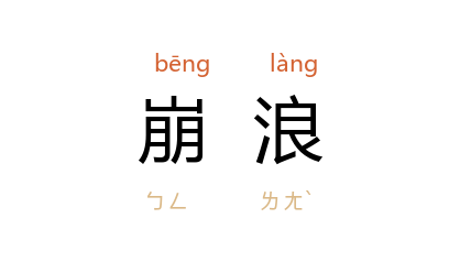 引晋 郭璞 《江赋》:“触曲厓以縈绕,骇崩浪而相礧。”北魏 郦道元 《水经注·溱水》:“悬湍迴注,崩浪震天。”宋 黄庭坚 《铜官县望五松山集句》诗:“北风无时休,崩浪聒天响。”清 吴伟业 《临淮老妓行》:“西施 一舸东南避, 鬱洲 崩浪大於山。”