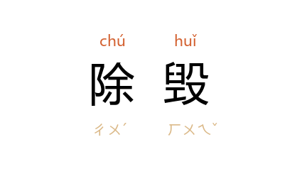 引《隋书·苏威传》:“威 见宫中以银为幔钩,因盛陈节俭之美以諭上。上为之改容,彫饰旧物,悉命除毁。”宋 周煇 《清波杂志》卷五:“淮西 宪臣 霍汉英 奏:欲乞应天下 苏軾 所撰碑刻,竝一例除毁。詔从之。”