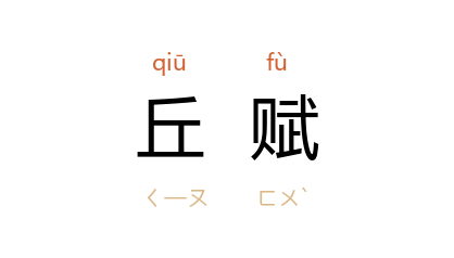 引《左传·昭公四年》:“郑 子产 作丘赋。”杜预 注:“丘,十六井,当出马一匹、牛三头。今 子产 别赋其田,如 鲁 之田赋。”范文澜 蔡美彪 等《中国通史》第一编第四章第六节:“丘赋是领主按丘征发军赋,丘内新垦土田愈多,分摊军赋愈轻。”