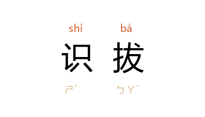 引《三国志·魏志·崔林传》“子 述 嗣” 裴松之 注引 晋 傅畅 《晋诸公赞》:“初, 林 识拔同郡 王经 於民伍之中,卒为名士,世以此称之。”宋 王安石 《已除观使乞免使相札子》:“且臣蒙陛下识拔,序之羣臣之右。”清 薛福成 《庸盦笔记·史料一·巡抚折藩司之焰》:“昆明 何根云 制军( 何桂清 )总督 两江,王壮愍公(王有龄 )素为所识拔,以一盐大使,不数年间荐擢至 江苏 布政使。”