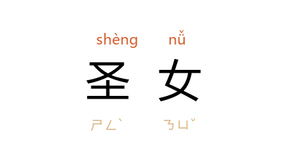 引汉 刘向 《列女传·齐宿瘤女》:“今日出游,得一圣女。”《汉书·元后传》:“后六百四十五年,宜有圣女兴。”北魏 郦道元 《水经注·漾水》:“﹝ 武都 秦冈山 ﹞悬崖之侧,列壁之上,有神象若图,指状妇人之容,其形上赤下白,世名之曰圣女神,至于福应愆违,方俗是祈。”王统照 《母爱》:“对于这位惠爱和祥的‘圣女’,她的良心不许她当面说谎。”