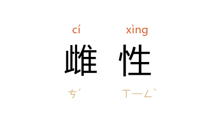 ⒈ 可产生卵细胞的性质(如形状、生理或行为)