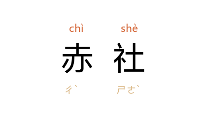 ⒈ 指赤色的社土。古代天子封土立社,以五色土象征四方及中央。赤色象南方,因以赤社分赐南方诸侯,使归而立社建国。《史记·三王世家》:“皇帝使御史大夫汤庙立子胥为广陵王。曰:'于戏,小子胥,受兹赤社!朕承祖考,维稽古建尔国家,封于南土,世为汉藩辅。'”后用作出任南方封疆大吏之典。