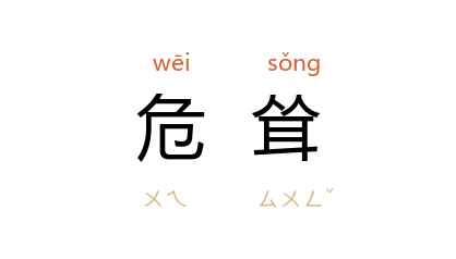 引南朝 梁元帝 《隐居先生陶弘景碑》:“千寻危耸,凴牖以望奔星。”明 无名氏 《四贤记·允娶》:“苦海沉深,愁城危耸。”刘白羽 《英雄城--平壤》:“巨大的建筑已经毁坏了,可是那危耸的高墙突立在月光之中。”