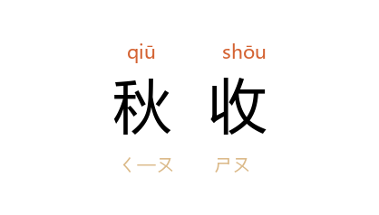 ⒈ 秋季收获农作物。也指秋天所收获的农作物。