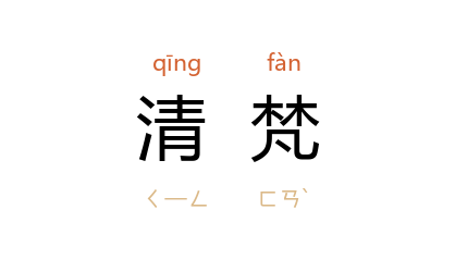 引南朝 梁 王僧孺 《初夜文》:“大招离垢之賔,广集应真之侣,清梵含吐,一唱三嘆。”唐 韩翃 《题僧房》诗:“名香连竹径,清梵出花臺。”清 钱泳 《履园丛话·杂记上·福慧庵》:“礼罢 远公 旧时塔,数声清梵莫云多。”