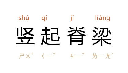 例如:「竖起脊梁做事。」