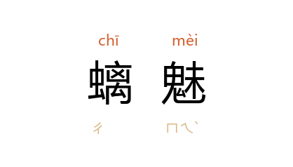 ⒉ 传说山林中害人的怪物。亦喻各种坏人。螭,通“魑”。