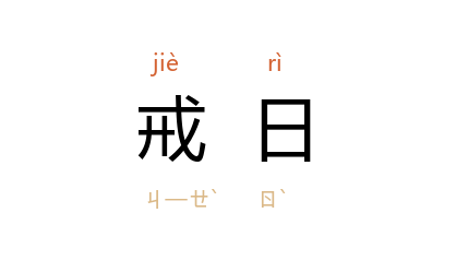 ⒈  语本《周礼·天官·大宰》:“祀五帝……前期十日,帅执事而卜日,遂戒。”后以“戒日”指卜日。