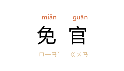 引《史记·淮南衡山列传》:“当皆免官削爵为士伍,毋得宦为吏。”《宋书·谢灵运传》:“坐輒杀门生,免官。”清 和邦额 《夜谭随录·崔秀才》:“廉将军 免官客去, 翟廷尉 復职客来。”