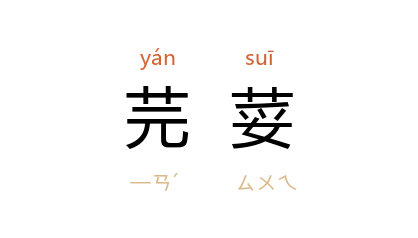 ⒈ 又名“胡荽”,俗称“香菜”。一年生草本植物。叶互生,羽状复叶,茎和叶有特殊香气,花小,白花。果实圆形,可做香料,也可入药。嫩茎和叶可以用来调味。