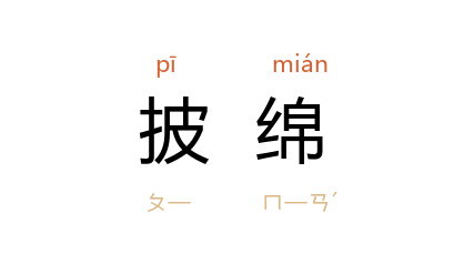 引宋 苏轼 《送牛尾狸与徐使君》诗:“通印子鱼犹带骨,披绵黄惟漫多脂。”施元之 注:“黄雀出 江西 临江军,土人谓脂厚为披绵。”亦用以指代黄雀。 宋 胡继宗 《书言故事·禽兽比喻》:“黄雀曰披緜。”