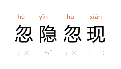 引《儒林外史·第一四回》:「又遥见隔江的山,高高低低,忽隐忽现。」