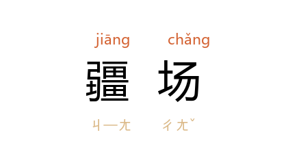 ⒈ 本当作疆埸,俗误作疆场。指战场。元·宫大用也作「疆埸」。