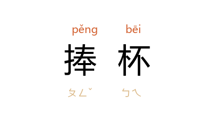 ⒈ 手捧奖杯,指体育比赛获得冠军。