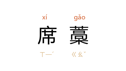 ⒈ 见“席槀”。席藁。藁,指用禾秆编成的席子。坐卧藁上是古人请罪的一种方式,因以指请罪。