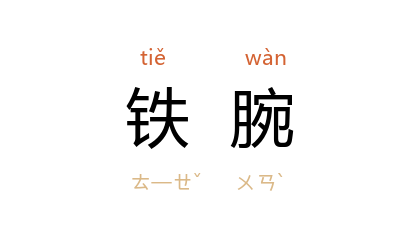 例如:「他的铁腕作风,已使公司营运状况好转。」