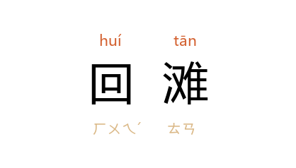 引唐 杜甫 《放船》诗:“收帆下急水,卷幔逐回滩。”杨伦 笺注引 张上若 云:“幔至回滩曲折则卷之,恐遮蔽也。”曲折流急的河道。 唐 岑参 《早上五盘岭》诗:“松疏露孤驛,花密藏迴滩。”