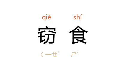 ⒈ 偷吃。 汉 王充 《论衡·知实》:“颜渊 炊饭,尘落甑中,欲置之则不清,投地则弃饭,掇而食之。