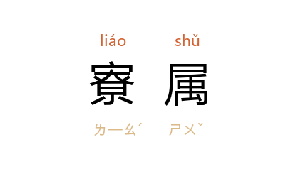 引《三国志·吴志·孙登传》:“登 待接寮属,略用布衣之礼,与 恪、休、谭 等或同舆而载,或共帐而寐。”《晋书·桓温传》:“於是过 淮 泗,践北境,与诸寮属登 平乘楼,眺瞩中原。”唐 李频 《送鄂渚韦尚书赴镇》诗:“谁知旧寮属,攀饯泪仍流。”《明史·于谦传》:“顾佐 为都御史,待寮属甚严,独下 谦,以为才胜己也。”