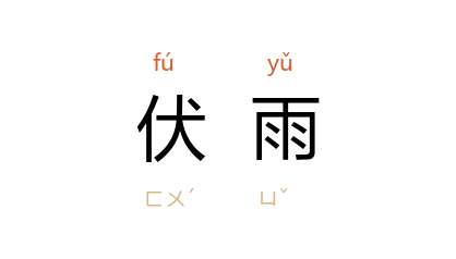 引唐 杜甫 《秋雨叹》诗之二:“阑风伏雨秋纷纷,四海八荒同一云。”仇兆鳌 注引 赵子栎 曰:“阑珊之风,沉伏之雨,言其风雨之不已也。”明 刘若愚 《酌中志·内府衙门职掌》:“﹝红萝炭﹞如经伏雨久淋,性未过尽,而火气太炽,多能损人。”清 纳兰性德 《浣溪纱》词之二:“伏雨朝寒愁不胜,那能还傍杏花行。”