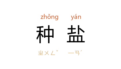 引《警世通言·杜十娘怒沉百宝箱》:“家资巨富,积祖 扬州 种盐。”严敦易 注:“种盐,做盐商。”《二刻拍案惊奇》卷二一:“禄 废业不成,却精於商贾搉算之事。其父就带他去 山东 相帮种盐。”