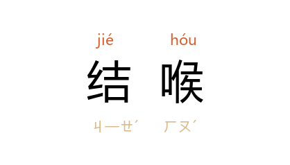 引汉 刘向 《新序·杂事二》:“齐 有妇人,极丑无双,号曰 无盐女。其为人也,臼头深目,长肚大节,昂鼻结喉,肥项少髮。”《续资治通鉴·宋太祖开宝七年》:“尔国弄权者结喉小儿 张洎,何不入使?尔归,可諭一来,朕欲观之。”