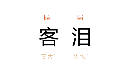 引南朝 梁 沉约 《晨征听晓鸿》诗:“闻雁夜南飞,客泪夜沾衣。”南朝 陈 刘删 《赋得马》诗:“边声陨客泪,果下益桃红。”唐 杜甫 《九成宫》诗:“哀猿啼一声,客泪迸林藪。”唐 韩愈 《晚次宣溪绝句》:“客泪数行先自落,鷓鴣休傍耳边啼。”