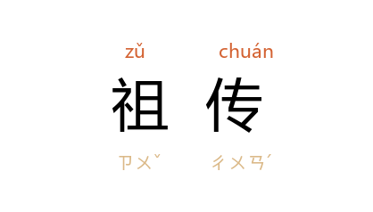 英handed down from one’s ancestors; handed down in the family from generation to generation;