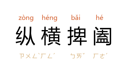 ⒈ 原指战国时代策士以“合纵”或“连横”之政治主张游说各国诸侯的方法。后因称以辞令测探、打动别人,在政治和外交上运用联合或分化的手段为“纵横捭阖”。